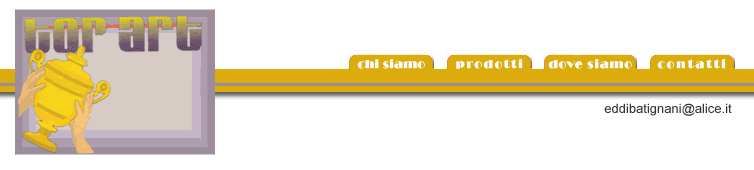 TOP ART nasce negli anni '80 in un piccolo paese nel cuore della Val di Chiana come negozio per la vendita di coppe, trofei, targhe, timbri e cornici per quadri.